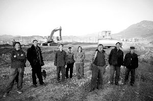 昨日下午,40余名松樹(shù)峪村村民守在村東口的修路工地里,阻止推土機(jī)掘土施工,數(shù)輛施工機(jī)器停在工地由工人看守。被推平的土地寬20余米,兩側(cè)的莊稼地里還留著連片的秸稈。