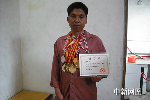 劉朝生自豪地向記者展示他獲得的獎牌和證書。作 者:馮昶 李凌 鄧國柱
