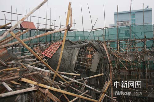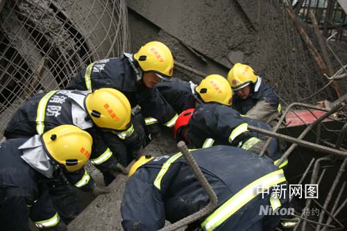 據了解,鄞州消防大隊接到報警,迅速出動3輛消防車18名消防戰(zhàn)士到達現(xiàn)場,發(fā)現(xiàn)六七名施工人員已經倒在鋼筋水泥中,但幸好不是埋的很深,于是消防戰(zhàn)士就用救援器械將困住受傷者的斷裂鐵架等雜物一一清理掉。