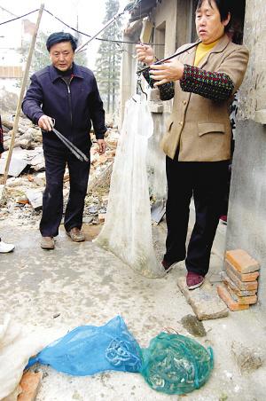老徐告訴記者,家里遭遇蛇災并不是第一次了。早在16日清晨,老徐夫婦倆就在平房的窗戶上發(fā)現(xiàn)了一個裝有蛇的袋口半開的網(wǎng)袋,幾只溜出來的蛇正躲在屋角。