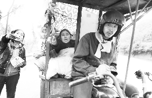 為趕路,他們每天駕駛10小時以上是“最低標準”。三輪車沒有駕駛室,男人們不得不把棉衣包在頭上抵御風寒。為減少開支,每人一天最多吃兩頓飯,臨行前,每家都準備了幾箱方便面,因為沒有熱水,方便面大都被干啃下肚。睡覺是走到哪睡到哪———男人讓出車廂在公路邊上打地鋪,女人小孩在車廂內(nèi)將就。洗臉、洗頭,更是奢望。十多天下來,每個人的臉和手都已干裂,風刮得生痛。
