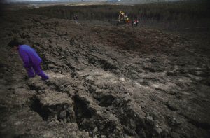 昨天,現(xiàn)場還圍著警戒線,地上露出一個深約4米、直徑9米左右的大坑,一旁散落的泥土,被火燒烤后呈龜裂狀,讓人觸目驚心。