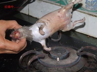 記者在網(wǎng)上看到,這位名叫“蔥油桂魚”的網(wǎng)友不僅當(dāng)場宰殺、烹飪了這只老鼠,還把對老鼠又烤又剁的場景一一拍了下來,每張圖片都被輔以文字說明,例如“開膛”、“六馬分尸”、“罪惡下場”等,甚至有老鼠被開膛破肚、腸子都被拉在外面的圖片。最后一張圖片更是讓人不寒而栗。在“蔥油桂魚”將老鼠烹飪完后,最后一張照片不僅向大家展示了烹飪成品,還把砍下的老鼠頭和四肢齊刷刷地擺在了餐盤旁。