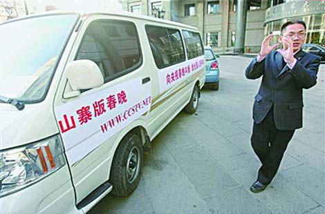 “向央視春晚叫板,給全國(guó)人民拜年”,并標(biāo)了山寨春晚網(wǎng)址。11月28日,北京一小區(qū)的樓下,一輛寫(xiě)有挑釁口號(hào)的面包車(chē)非常惹眼。這輛“牛車(chē)”車(chē)主四川小伙老孟說(shuō),要自辦一場(chǎng)草根參加的山寨版春晚,時(shí)間與央視春晚同步,通過(guò)網(wǎng)絡(luò)直播,目的就是向央視春晚叫板。