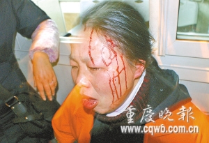 當(dāng)該車行駛到北環(huán)收費(fèi)站外紅星美凱龍轉(zhuǎn)盤時(shí),尾隨于渝A26628號大型客車后的一輛牌照為渝AZ3467的金杯車突然加速,橫攔在客車前,車上沖下數(shù)名壯漢,不由分說沖上大客車,與大客車女駕駛員一道,對兩名隊(duì)員進(jìn)行圍毆,同時(shí)搶下執(zhí)法人員袁帥手中的攝像機(jī)進(jìn)行打砸;靵y中,兩名執(zhí)法人員頭、胸、背多處受傷,代雙手指還被人咬傷。整個(gè)暴力行為持續(xù)了10余分鐘,隨后,施暴者一哄而散。