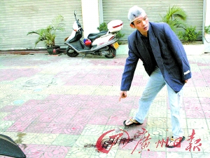 昨天上午,記者接報(bào)料后趕到事發(fā)地三水西南街道三達(dá)路冰皇咖啡館門前,一瘦小個(gè)男子頭部打著紗帶,血跡印紅了紗布,男子的牛仔褲上仍有血跡,地上有一攤已經(jīng)干了的血跡及零星血點(diǎn)。該男子告訴記者,他就是昨晚被打之人,他叫蘇成營(yíng),今年34歲,是肇慶封開(kāi)縣長(zhǎng)按鎮(zhèn)人,在三水做裝修工作。
