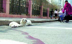 同伴遇車禍,先是在滾滾車流中舍命將其拖至路邊,然后伏在其身邊守望,親吻,試圖喚醒遇難的同伴……這一幕的主角不是人,而是一只普普通通的白色小京巴!3月1日下午1時(shí)許,青島大堯一路與逍遙二路路口上演了這感人至深的一幕,很多圍觀的市民唏噓不已,有的市民甚至當(dāng)場(chǎng)流下了同情的淚水。