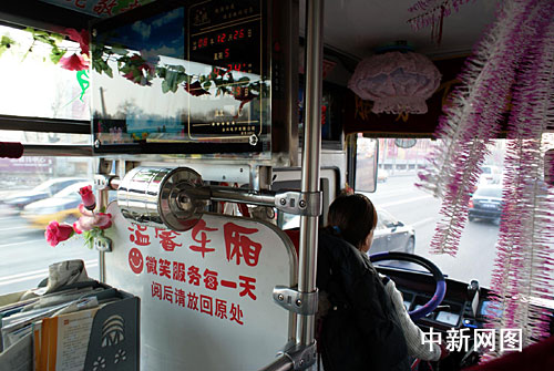 “接新車前,我就有把車廂裝扮得像自己家一樣的想法,F(xiàn)在,我的車上已經(jīng)布置了很多小設(shè)備,比如鏡子、木梳和洗漱池,都是給一些和我一樣愛美的女士準(zhǔn)備的。夏天的時(shí)候她們可以在乘車的過程中照照鏡子,打扮打扮自己!闭f起自己最滿意的創(chuàng)意布置,該公交車的司機(jī)王女士這樣告訴記者。