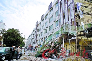 昨日10時40分許,位于深圳市南山區(qū)蛇口公園路一在建工地的腳手架發(fā)生坍塌,5名工人被埋,共造成6人受傷,其中4人傷勢較重。