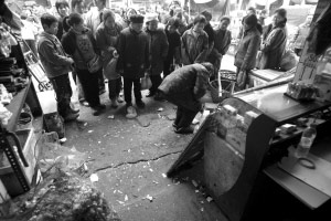 “我求求你們不要打了!焙L中,73歲的老人熊克儉“撲通”跪在油膩的石臺階上,向扭打成一團的三個兒女說道。昨日上午9點,石橋鋪渝州交易城農(nóng)貿(mào)市場內(nèi)的這一幕,使得圍觀市民全被震驚了。有知情市民說,老人的三個兒女短短10多天打了3次架,每天吵架,已經(jīng)幾次鬧進派出所。