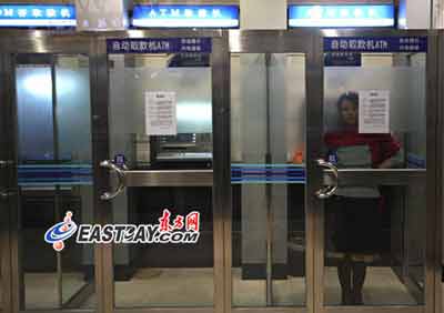 記者于昨天傍晚趕到事發(fā)的自助銀行看到,兩名料理店店員仍舊守候在大門口,而女子則背對(duì)他們站在ATM機(jī)前不肯回頭。期間曾有人拍打防護(hù)門請(qǐng)她走出,但女子并未理睬。店員表示,他們也曾勸她出來,但女子始終拒絕,并稱身上帶有一把很鋒利的瑞士軍刀,不讓他們靠近。