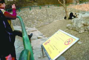 動物園工作人員表示,鑒于動物園曾發(fā)生過游客跳入大熊貓運(yùn)動場被咬事件,園方已安排動物展示時專人看護(hù),并在多處多角度設(shè)置了警示牌、提示牌。