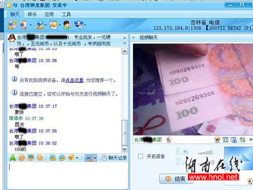 據(jù)記者與該男子聊天時(shí),QQIP地址欄顯示對方IP在日本,接通視頻聊天后,IP地址又更換為“吉林省123.173.184.9:1308”。據(jù)該男子提供的手機(jī)號碼1363627****的歸屬地為湖北恩施,另一個(gè)手機(jī)號1313016****的歸屬地為遼寧鞍山。同時(shí)向記者提供了一個(gè)農(nóng)行帳號和一個(gè)工行帳號。