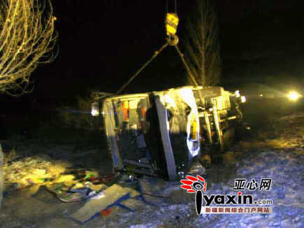 1月17日凌晨3時許,在大雪中,一輛載有35名乘客的大客車從塔城和豐縣開往烏魯木齊時,途經(jīng)312國道4251公里處(呼圖壁縣境內(nèi))時與一輛大貨車迎面相撞,致使大客車側(cè)翻路基下,3人死亡,25人受傷。該事故還致使另外4輛車發(fā)生連環(huán)相撞。