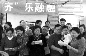 大年初一,北京電視臺春晚播出的同時,在節(jié)目里亮相的124人大家庭也舉辦了第9屆“家庭春晚”。前晚,在房山一度假村內(nèi),“家庭成員團拜會”的橫幅拉起,一塊大紅綢子鋪開,每個到來的家庭成員都要簽到。家庭成員齊申寅介紹,這是2001年以來的第9屆“家庭春晚”,124名家庭成員里的五十多人到場,年齡最大的92歲,最小的兩歲半。