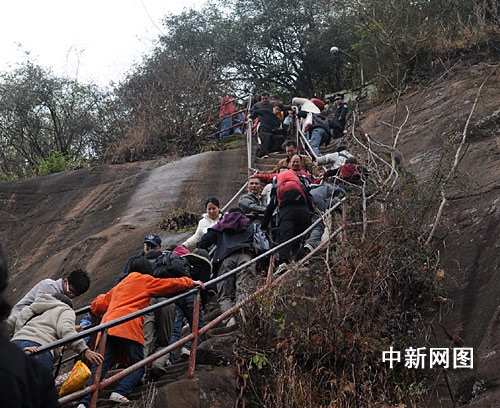 記者在登山的時(shí)候,發(fā)現(xiàn)了一撥來(lái)自四川災(zāi)區(qū)的同胞們也趕至丹霞山慶新年。他們是曾氏家族、四世同堂30多人浩浩蕩蕩地開(kāi)著五部車(chē)從成都慕名來(lái)到丹霞山,他們?cè)谶@雄偉壯觀的丹霞美景的面前,也許下了對(duì)四川、對(duì)祖國(guó)的美好新年祝愿:“丹霞最美、丹霞最牛、四川雄起、祖國(guó)昌盛”!
