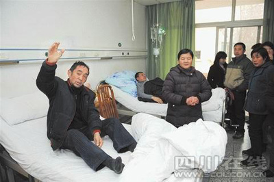 侄兒羅介平從前面點的平臺繞下山崖,準備將羅從陽救上來。這時的羅從陽意識還算清楚,躺在地上活動了一下四肢,感覺都沒什么問題。在羅介平的幫助下,羅從陽才回到路上!皾L下來的中途有一些竹子擋到,我覺得就是頭暈。”羅從陽被山崖上的碎石磕傷了頭部和面部,滿臉是血的他讓上面等待的親人看得揪心。他還不太相信自己是被猴子推下去的。當?shù)睾眯牡拇迕翊斜?音)聞訊趕來把羅從陽背下了山,羅家和兩名西嶺雪山風景園區(qū)管委會的工作人員,將羅從陽送到了大邑縣人民醫(yī)院。經(jīng)過檢查,他頭部的傷并沒有大礙,縫合10余針住院觀察幾天即可。