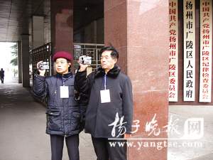 大年初七是節(jié)后上班第一天,上午8:20,在揚州市廣陵區(qū)政府當(dāng)公務(wù)員的張先生上班時驚奇地看到,單位大門口有人“架”著攝像機(jī)正“掃”著上班的人和車輛,“這不是在看誰上班遲到嗎?”老張不禁加快了步伐。昨天上午,有“城市啄木鳥”之稱、專給不文明現(xiàn)象“挑刺”的揚州一民間團(tuán)體市民觀察團(tuán),派出6個小組91名團(tuán)員,掛著工作牌,帶著攝像機(jī)來到該市城區(qū)各級政府門前,專門“聚焦”上班遲到者,以特有的方式治理節(jié)后懶散病,狠殺“年氣”,督促大家回到正常的工作狀態(tài)。