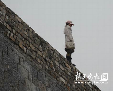 昨天上午,記者接姚先生報料電話趕到龍蟠中路東水關(guān)公園里一段近20米高的城墻邊。只見城墻上一名背包女子站在城墻邊上搖搖欲墜,眾多路人在城墻腳下勸她不要跳。知情者姚先生告訴記者,大約上午8點多鐘,就有人看見這名女子走上了城墻,起初大家都沒有在意,城墻上也有一些拾級而上登高望遠的市民,后來看到這名穿著淺色棉襖、背著一個白色挎包的姑娘站上了城墻觀景扶手,頓時周圍有上年紀的人喊:“危險,快下來!”哪知道女子不但不下來還作勢往前傾,這時圍觀市民發(fā)覺不對,趕緊報警。白鷺洲派出所民警迅速趕到,爬上城墻慢慢靠近女子勸說,但該女子始終不肯走下城墻觀景扶手,也不要民警靠近她,就這么耗著。接報趕來的消防隊員也迅速在城墻腳下搭起一個20多平方米的充氣墊,后來一名30歲左右的女子趕來,告訴民警原委。原來該欲輕生女子叫肖麗,是徐州來寧的,年前在南京結(jié)識了一位年輕男子王強,也就是后來趕來的30歲左右女子的弟弟。男方一家在城南一帶做些小生意,肖麗因為和王強談朋友相處久了,自然而然就與王家人也很熟絡(luò),春節(jié)期間肖麗回家探親,前天過完年回來,王強老是不愿意見她,說話也怪怪的。肖麗奇怪,就去問王強的姐姐以及王強父母,哪知道他們都勸說肖麗要想開點,王強可能不愿和她繼續(xù)交往了。
