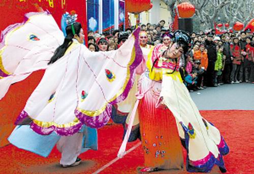 昨天下午,優(yōu)雅而窄窄的泰興路上,到處張燈結彩,到處是歡聲笑語,有社區(qū)居民客串的舞龍、舞獅、蚌燈、蕩湖船、走花轎行街表演,有王家沙搬來的全套上海小吃,有街頭老藝人的面人和彩蛋,有街坊鄰居間玩的抖空竹和拔河游戲,有滿街掛著的各種元宵燈謎,還有穿著華貴旗袍和長衫的老上;优雍驼f書先生的街頭行為藝術……這就是南京西路街道舉辦的元宵張園游園會。