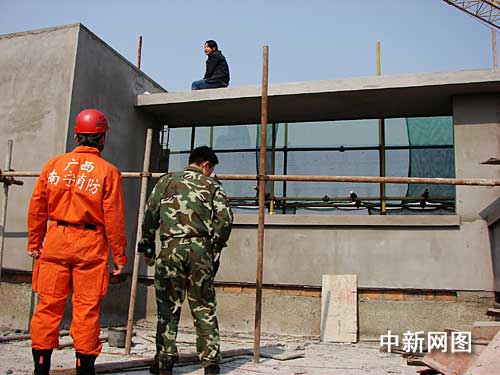 事發(fā)現(xiàn)場在南寧民族大道瑯東汽車站旁的某工地旁,救援人員趕到時,只見一名30歲左右的女子趴在11層高樓的頂部上大聲哭喊,揚(yáng)言如果施工方不支付丈夫的醫(yī)藥費(fèi)2萬元就當(dāng)場跳樓自殺,情緒非常激動。