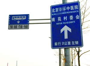 看到新聞爆出立水橋附近的“山寨路標(biāo)”,家住新發(fā)地的時(shí)先生發(fā)現(xiàn),自家附近也有這樣“雷人”的指路牌,分別指向附近的兩家醫(yī)院和南苑村委會(huì)。