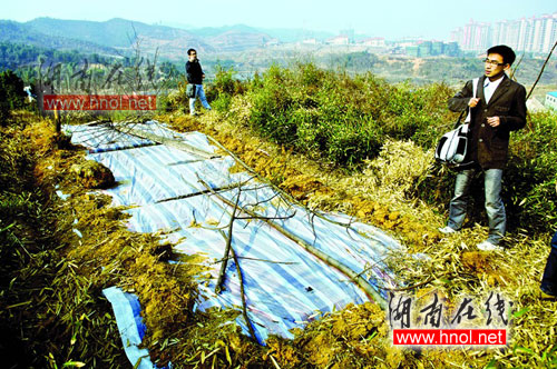 望城某鎮(zhèn)(出于保密需要,此處隱去鎮(zhèn)名)文化專員向記者介紹了該鎮(zhèn)墓葬被盜的情況。2009年1月20日左右,鎮(zhèn)子某村的村民發(fā)現(xiàn)某山頭幾個(gè)晚上都是凌晨的時(shí)候有燈光。村干部起初以為是誰(shuí)想偷偷土葬親人,就報(bào)告了政府部門,“等公安、民政部門的人上山一看才發(fā)現(xiàn),只有一個(gè)大洞,什么都沒(méi)有,后來(lái)叫了文物部門的人過(guò)來(lái),才證實(shí)是盜洞。不過(guò)文物部門表示,該盜洞打偏了,沒(méi)有觸及墓室!痹撐幕瘜T還表示,“我們知道周圍是文物保護(hù)區(qū),一直以來(lái)我們都是實(shí)施秘密保護(hù),除了政府部門和文物部門,當(dāng)?shù)貨](méi)有人知道周圍有墓葬,這回出這個(gè)事情,我懷疑是內(nèi)部走漏了消息!