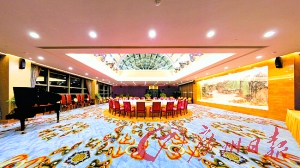 最具特色的則是位于31層頂樓的壹號(hào)包房,單個(gè)包房面積達(dá)700平方米,一張超大的圍臺(tái)擺在包房正中央,據(jù)說(shuō)滿座的話可容納60人。這個(gè)包房給記者印象最震撼的是天花板可以像天幕一樣開(kāi)啟。服務(wù)員按下電動(dòng)按鈕,在音樂(lè)聲中面積近百平方米的玻璃天花板緩慢向兩側(cè)拉開(kāi),如同汽車的天窗一樣。孫四元笑稱,幾乎每批壹號(hào)包房的客人都會(huì)要求開(kāi)一次天幕,可惜的是廣州空氣質(zhì)量不佳,難得看到藍(lán)天或者滿天星星。