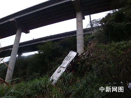 據(jù)韶關(guān)市交警部門(mén)通報(bào),二月二十八日上午,河南省鄭州市一輛掛豫R三八五二二號(hào)牌的雙層臥鋪大客車(chē),從河南省南陽(yáng)市搭載乘客四十三人前往東莞,三月一日凌晨三時(shí)四十六分,途經(jīng)京珠高速公路粵北段南行七十九公里+二百米處時(shí),遇見(jiàn)前方路面情況,采取制動(dòng)及避讓措施時(shí),碰撞左側(cè)約零點(diǎn)六米高護(hù)欄后,沖出高架路外,掉下約五十米深山溝,所幸在半坡處被巨大的橋柱擋了一下,才未跌落谷底。