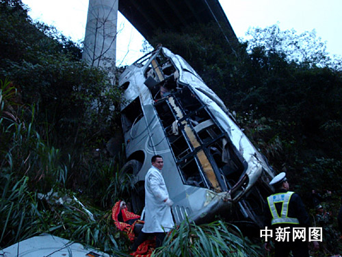中新網(wǎng)韶關(guān)3月1日電 (馮昶 李凌 陳孔勇 陳玉升)三月一日凌晨三時(shí)四十六分,京珠高速公路廣東韶關(guān)段乳源境內(nèi)段發(fā)生一宗大客車(chē)沖出護(hù)欄,摔下山崖,造成四人死亡、五人重傷、三十四人輕傷的特大交通事故。