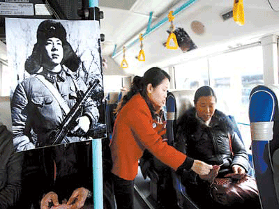 該公司相關(guān)人士介紹,601路隊已被公司命名為“雷鋒路隊”,該路隊的20輛公交車,將在車廂內(nèi)的車窗上方,張貼雷鋒的照片和語錄。