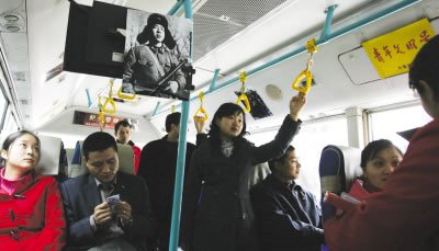 每年的3月5日是“學(xué)雷鋒日”,為紀(jì)念毛澤東提出“向雷鋒同志學(xué)習(xí)”46周年,公交集團(tuán)冠忠新城公司601線路昨日成為我市第一條“雷鋒路隊(duì)”。但裝飾一新的“雷鋒車”上路行駛時(shí)遭遇尷尬:不但義務(wù)幫助乘客提行李的舉動(dòng)屢屢遭拒絕,而且很多年輕乘客不認(rèn)識(shí)雷鋒,更被初中生誤認(rèn)為是董存瑞。