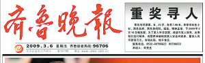 3月5日至3月6日,包括山東青島的《半島都市報(bào)》、濟(jì)南的《齊魯晚報(bào)》均在頭版刊登了《重獎(jiǎng)尋人》廣告,此外,包括3月6日的青島交通臺也在播放這則尋人啟事。