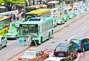 昨日(7)中午12時許,在廣州天河區(qū)崗頂公交車站前等車的趙先生目睹了電影中才會發(fā)生的一幕:一輛298路公交車猛地沖向馬路中間的護(hù)欄,滑行了近30米后才停下來。強大的沖擊力將十余個鐵制護(hù)欄連根鏟起。車上當(dāng)時載有四五十名乘客,但只有司機受傷。據(jù)了解,該事故的起因竟是區(qū)區(qū)6元的車資找零。