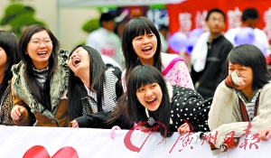 昨天下午,在東莞市新華南MALL就上演了一場別開生面的男生高跟鞋大賽,約400名男子集體穿著高跟鞋賽跑慶祝三八婦女節(jié)。盡管在情侶賽跑環(huán)節(jié)不少情侶都會驚險地摔上一跤,不過他們?nèi)孕θ轁M面沖到終點,然后再來一個深情的擁抱。