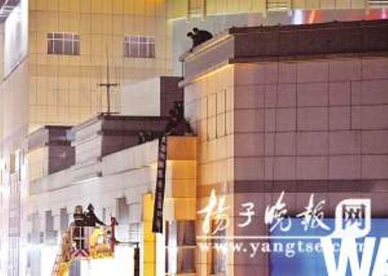 昨天下午5點(diǎn)多鐘,在新街口萬達(dá)廣場逛街的市民們發(fā)現(xiàn)萬達(dá)的樓頂竟然有一個穿著紅衣服的女子坐在平臺邊緣,稍不注意,就有可能墜樓。有熱心市民向警方報警后,“110”特巡警以及轄區(qū)淮海路派出所的民警迅速趕到了現(xiàn)場展開營救。消防部門也隨即接到命令到現(xiàn)場增援,消防官兵在地面上將氣墊打開,防止意外發(fā)生。一輛云梯消防車也在事發(fā)后半小時內(nèi)趕到了現(xiàn)場。