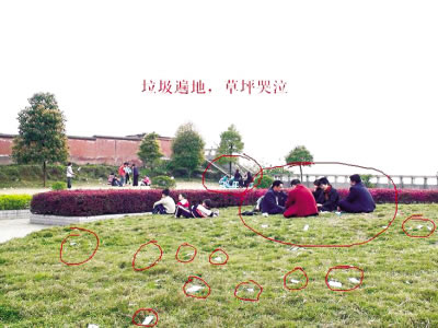天涯網(wǎng)友“surperdry1”稱(chēng),15日那天,春光明媚,他帶上全家人到位于江津艾坪山的烈士陵園里面緬懷先烈。進(jìn)入陵園卻發(fā)現(xiàn)麻將聲聲,雞鳴不已,并配發(fā)大量照片以證實(shí)自己的話。此帖一出,立即引來(lái)網(wǎng)上熱議。烈士陵園怎能受到如此待遇?“surperdry1”還說(shuō),盡管草坪上有石碑警示路人“請(qǐng)您尊重安息在陵園內(nèi)的革命英烈,用文明的言行維護(hù)陵園的莊嚴(yán)肅穆”,但游人仍然我行我素。