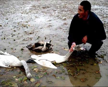鄱陽(yáng)湖長(zhǎng)170公里,寬70余公里,在這樣的廣闊的濕地抓捕罪犯,由于人力和裝備所限,打擊受到了局限。即便是這樣,江西森林公安今年也加大了打擊的力度,今年可以說是江西的森林公安查獲捕殺天鵝案件最多的一年。其中南昌市森林公安局查獲了一起販賣21只活天鵝的案件,堪稱捕捉販賣天鵝的大案。記者在江西采訪的幾天里,經(jīng)常會(huì)聽到某某因捕殺天鵝被通緝,哪個(gè)哪個(gè)派出所又抓住了一個(gè)捕捉販賣天鵝的犯罪嫌疑人,即便在這樣嚴(yán)厲打擊的情況下,記者前往鄱陽(yáng)湖察看,還是看到了長(zhǎng)達(dá)數(shù)公里的天網(wǎng),捕殺天鵝的現(xiàn)場(chǎng)讓人觸目驚心,那么鄱陽(yáng)湖里捕殺天鵝有著什么樣的現(xiàn)狀,還有哪些利益鏈條,明天的《東方時(shí)空》將繼續(xù)揭開黑幕。(中央電視臺(tái))