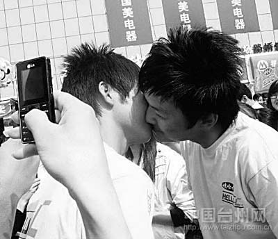 網(wǎng)友Luochen725發(fā)貼:前天下午,我剛好在路橋富仕廣場附近逛街,聽說有接吻大賽,就過去湊熱鬧。不看不知道,一看不得了,兩個男人在接吻,汗,有兩對,頓時被雷倒了!他們還按主持人的要求擺不同的姿勢,熱吻了一個多小時,我暈!情侶參加活動可以接受,不過對我來說,這么多人看著,覺得比較怪。而兩個大男人這么大庭廣眾之下接吻,我就真的是無語了。