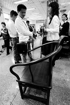 昨日,在武昌起點(diǎn)人力資源市場舉辦的湖南商會專場招聘會上,一招聘單位將一把新椅子放在招聘展位前,寓意虛位以待、求賢若渴,期待能招到更多的實(shí)用人才。(記者 金思柳 通訊員 孫文茹 攝)(記者 齊翔 實(shí)習(xí)生 孫廣茹 周琴)
