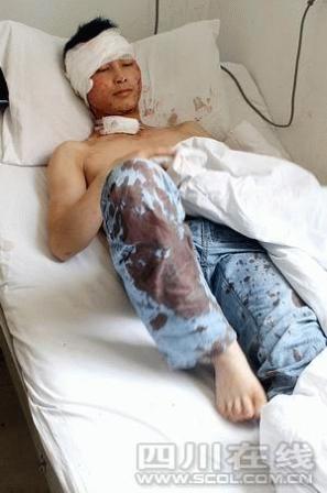 昨(20)日上午,在建材路某工地做工的南充銀川人李軍(音)躺在醫(yī)院急診室,被菜刀砍得半截脫落的右耳已被縫合。事情的起因是李軍的同鄉(xiāng)工友李兵(音)欲送懷孕的妻子回老家,便向工隊(duì)老板提出要支取工資。由于沒立刻領(lǐng)到錢,李兵頗感不滿。李軍好心安慰他說“工資要發(fā)”!翱伤詾槲沂窃跒槔习宄鲱^,趁著酒勁就把我耳朵砍了。”