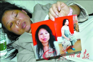 昨日,記者在松崗人民醫(yī)院見(jiàn)到卿女士,雖然事情已經(jīng)過(guò)去了3天,但是卿女士還是顯得十分虛弱,全身布滿傷痕,眼睛周?chē)吒吣[起。