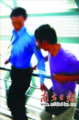 昨天下午2時07分,深圳前進二路沃爾瑪門口天橋上,新安街道城管執(zhí)法隊員練士滔被攤販老帥一刀從左腰背插入,刺穿前胸,轉(zhuǎn)過身后,他的右胸又挨了第二刀。老帥隨后逃跑,其妻張金群被警方帶走。
