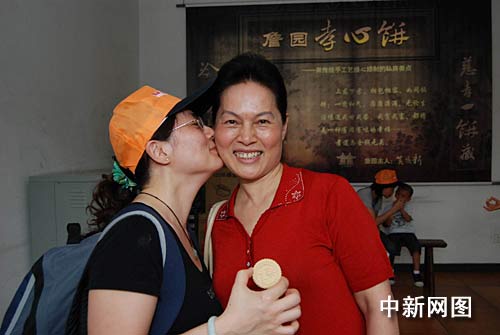 中新網(wǎng)廣州5月10日電(記者 莫非 通訊員 黃翠萍)“媽媽,我愛你!”在廣東中山詹園孝心餅制作大賽中奪得冠軍的劉女士給母親送上了深情一吻,也第一次送上了親手做的孝心餅,這讓劉媽媽笑開了懷。