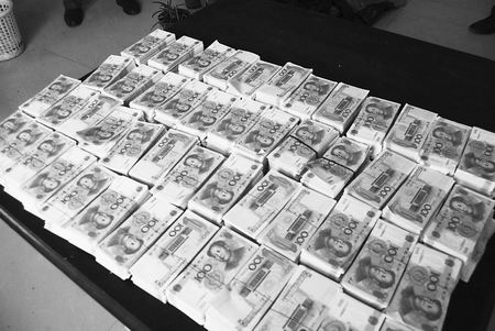 5月11日下午6時(shí)許,民警把兩名犯罪嫌疑人王某和趙某(系羅某次子)抓獲,在兩個(gè)編織袋中共起獲HB90版百元面值假幣250萬(wàn)元。