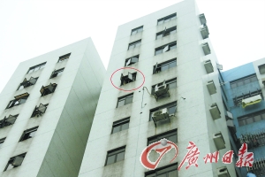 5月28日早上5時(shí)50分,東莞市虎門鎮(zhèn)某花園C座一女子劉某呼喊救命,之后劉某用兩條床單綁在一起,再將床單綁在14樓一窗戶上順著床單沿窗口爬出。由于體力不支,墜落當(dāng)場(chǎng)死亡。