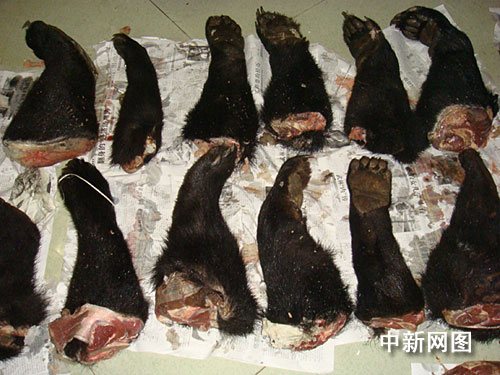 “這批被查獲的熊掌斷口血痕還隱約可見,包熊掌的紙張上印有外文”防城港警方介紹說。