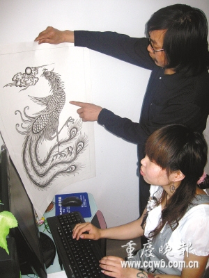 “年輕人要有事業(yè)心!备赣H曹術(shù)認(rèn)為,中國人自稱龍的傳人,炎黃子孫,對龍應(yīng)該有一種特殊的感情,女兒的屬相也屬龍,用手中的筆來描繪龍、贊美龍,本就是一件很自豪的事情。曹術(shù)說,千龍千鳳圖是夫妻畢生的追求和夢想,更希望女兒能將此發(fā)揚(yáng)光大。母親林雨梅告訴記者,丈夫起草圖、自己負(fù)責(zé)涂繪、女兒除了涂繪還負(fù)責(zé)電腦設(shè)計(jì)和文字工作,缺了誰都不得行。