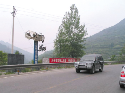 在國道一旁,一部只剩癟形外殼的汽車被高懸在近20米的半空中,令過往此地的司機(jī)無不瞠目結(jié)舌。近日,被稱之為“最牛交通安全警示教育基地”的照片出現(xiàn)在大渝網(wǎng),其極富創(chuàng)意的宣傳方式讓眾多網(wǎng)友拍手稱贊。
