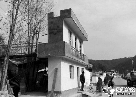 發(fā)帖者稱,“在河南省欒川縣叫河鄉(xiāng),一個(gè)建筑格外顯眼,就在公路旁邊,猛一看是兩層小樓,墻壁還刷得白白的,孰不知這棟樓深度只有1.5米左右,為了配合‘新農(nóng)村建設(shè)’建新房,可農(nóng)民又沒(méi)錢蓋‘真樓房’,就只有這樣做了!